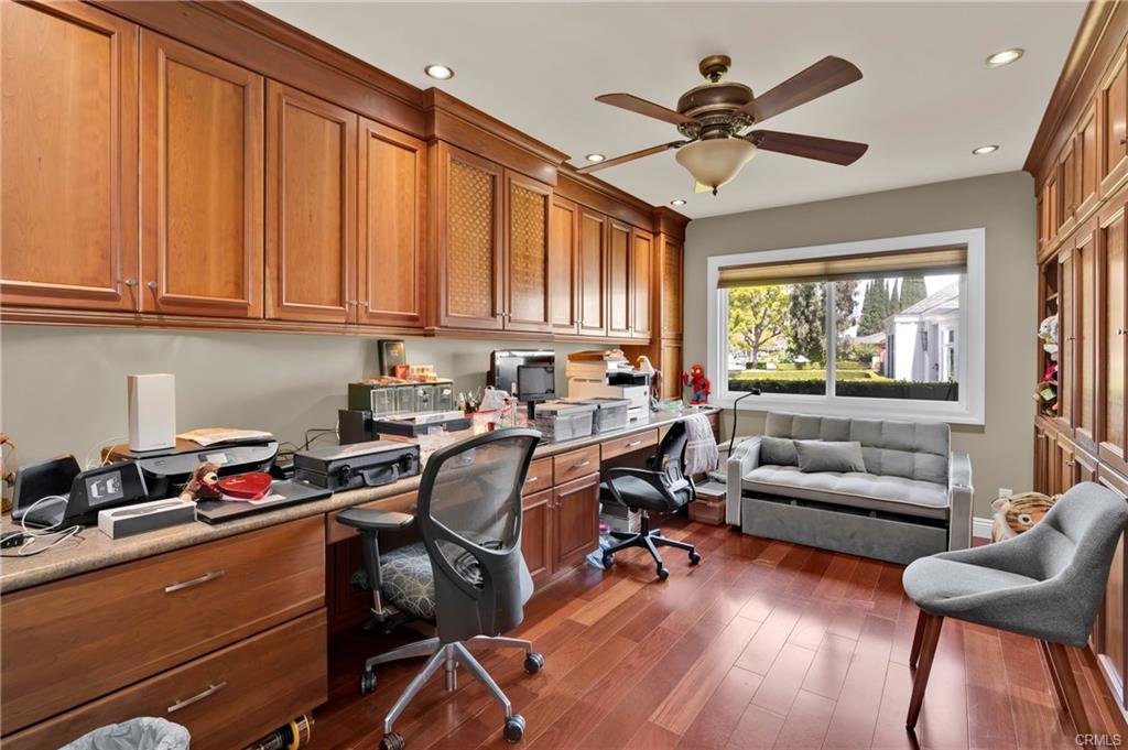 Experience this stunning residence, boasting exceptional street presence (awarded Santa Ana’s Most Beautiful Yard – 2018 in West Floral Park) and designed layout complemented by designer enhancements. The grand entrance through an inviting a formal living space adorned with premium hardwood floors, a cozy fireplace, abundant custom and recessed lighting, along with crown molding. The kitchen , featuring premium granite countertops, finely crafted cabinetry, and seamless flow to both an alfresco/in-house breakfast area and dining space. Highlighting two master suites, one offers an built-in office space, twin walk-in closets, and a bathroom that rivals a spa. The outdoor space is an entertainer’s paradise, equipped with a professional BBQ/bar setup, granite surfaces, water features, a fire pit, a tranquil garden, sheltered seating, and more! Additional include a dedicated laundry room, water heaters, dual-zone climate control, a comprehensive surround sound system inside and out, an undeveloped basement offering potential for further customization, and majestic olive trees.